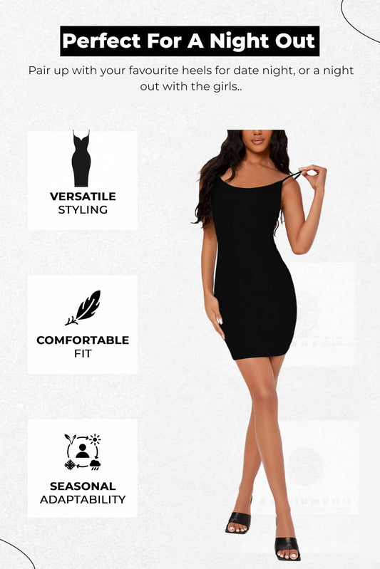 Re Tech UK Womens Ladies Plain Cami Dress Strappy Bodycon Dress Tank Tops Women Sleeveless Camisole Mini Dress Vest Tops Women UK Party Dresses for Women UK Women's Slips (UK 8-10 S/M, Black)