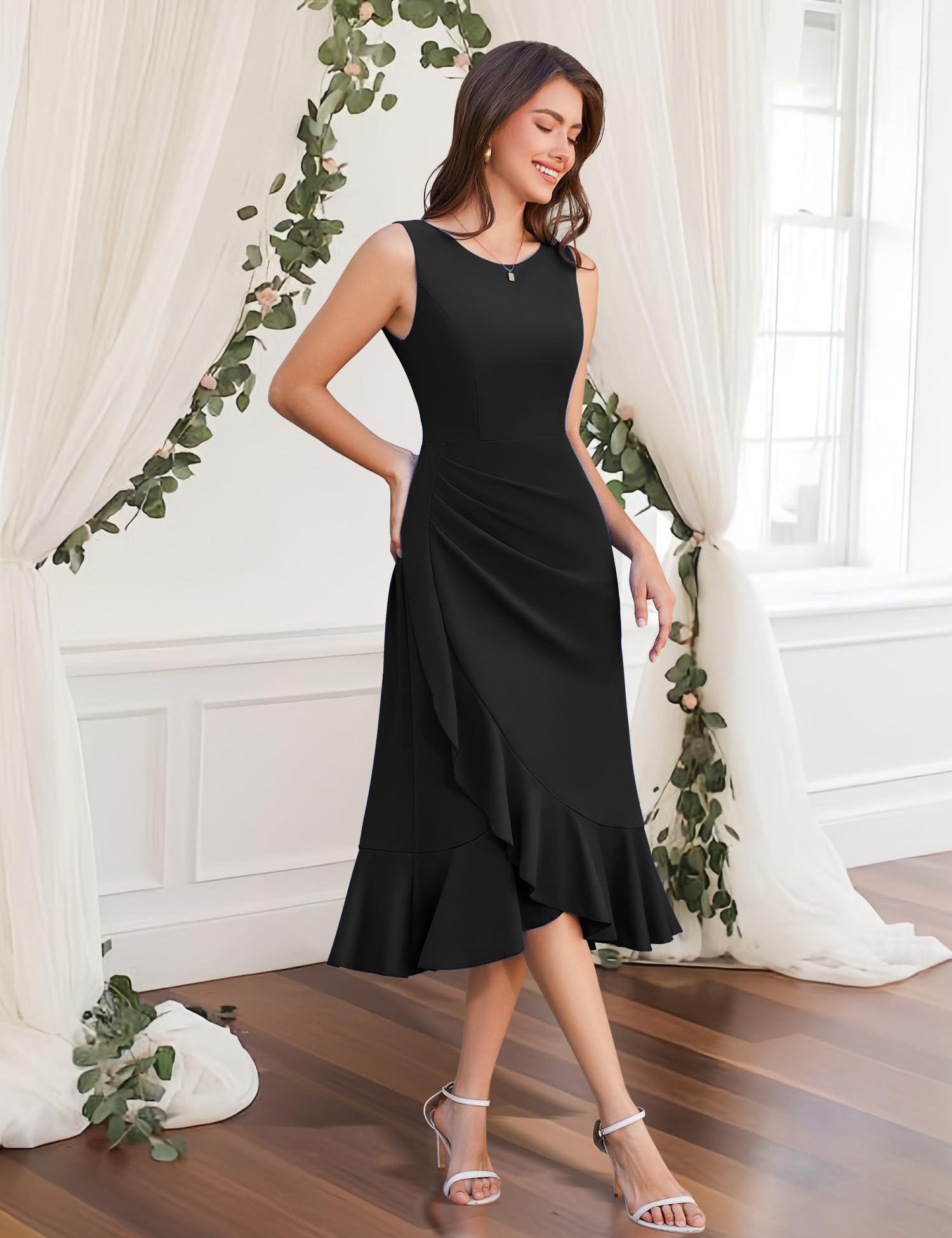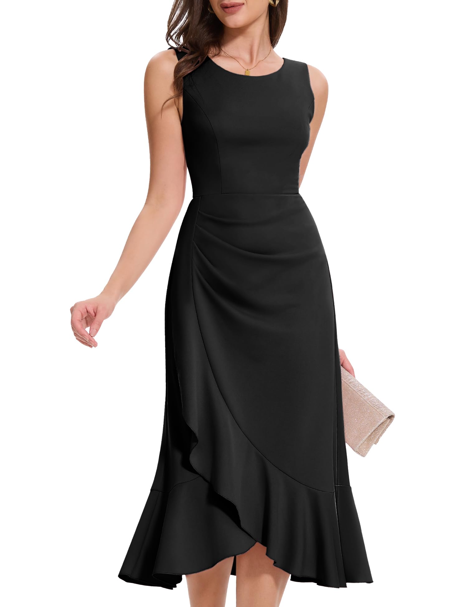 Aupuls Formal Dress for Women Evening Gown Wedding Guest Dresses for Women High Low Dresses Bodycon Dress for Women Cocktail Dresses Black Dresses for Women 2025 Party aupg015 Black S