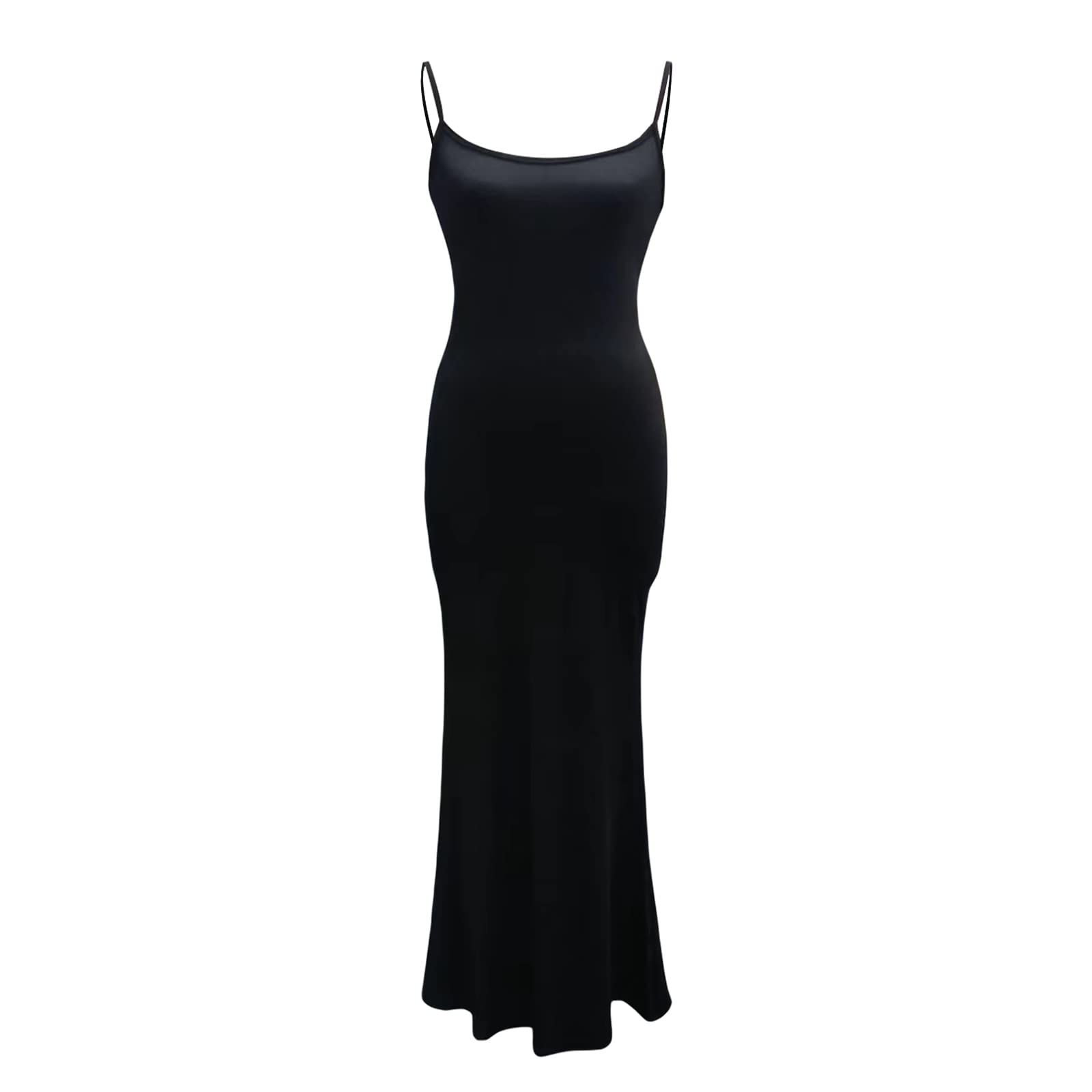 Geagodelia Women's Summer Maxi Dress Ladies Sexy Spaghetti Strap/Long Sleeve Bodycon Long Party Dresses Y2k Aesthetic Clothes Rave Outfit Skims Dupes (A - Black, XS)