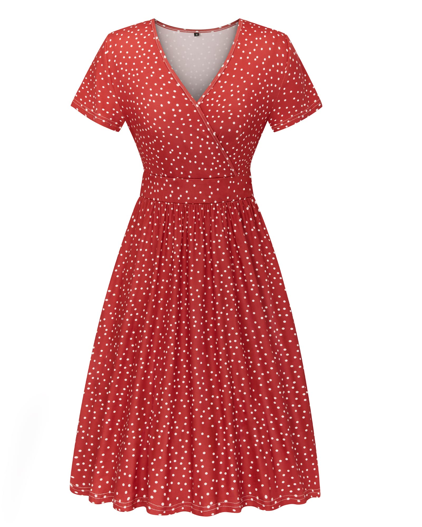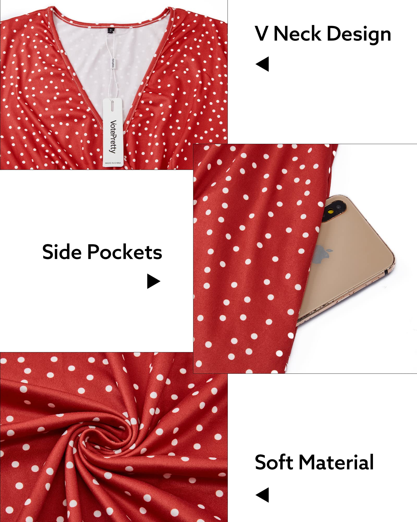 - Feature: Sexy deep v-neck, short sleeve wrap dress, knee length(above or below) dress with pockets, casual solid dress, empire waist pattern dress, floral party dresses for women, womens sun dress, this cute fit and flare dress makes you fashionable and charming