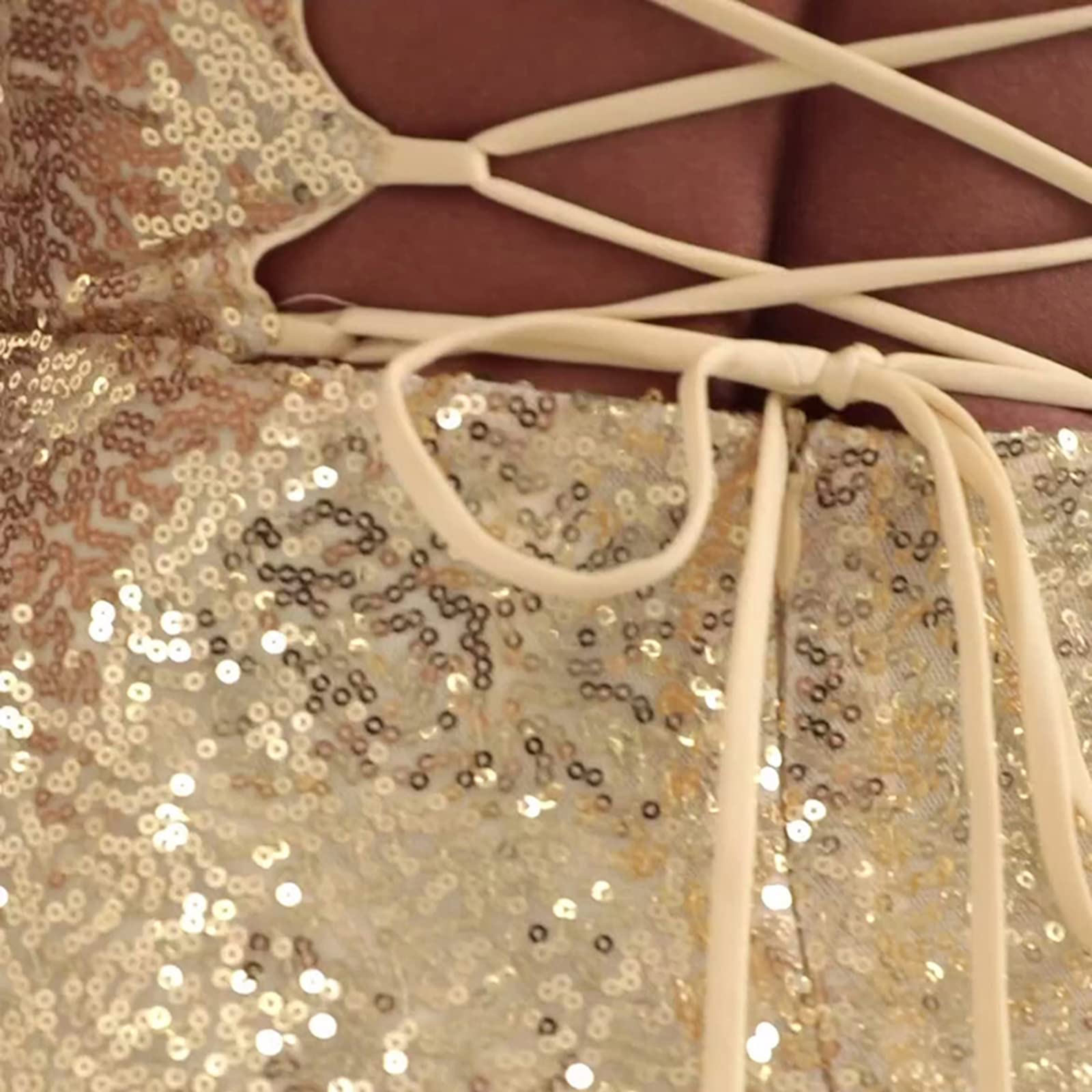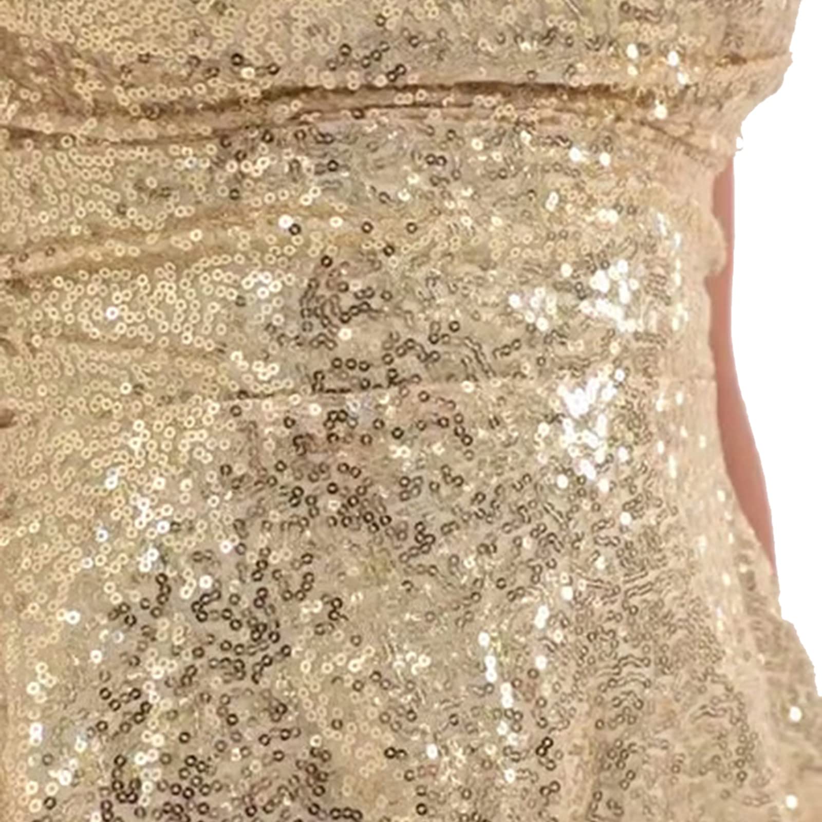 Yoisdtxc Women's Glitter Sequin Mini Dress Sparkly Backless Spaghetti Strap A Line Dress for Cocktail Beach Streetwear (Gold, S)